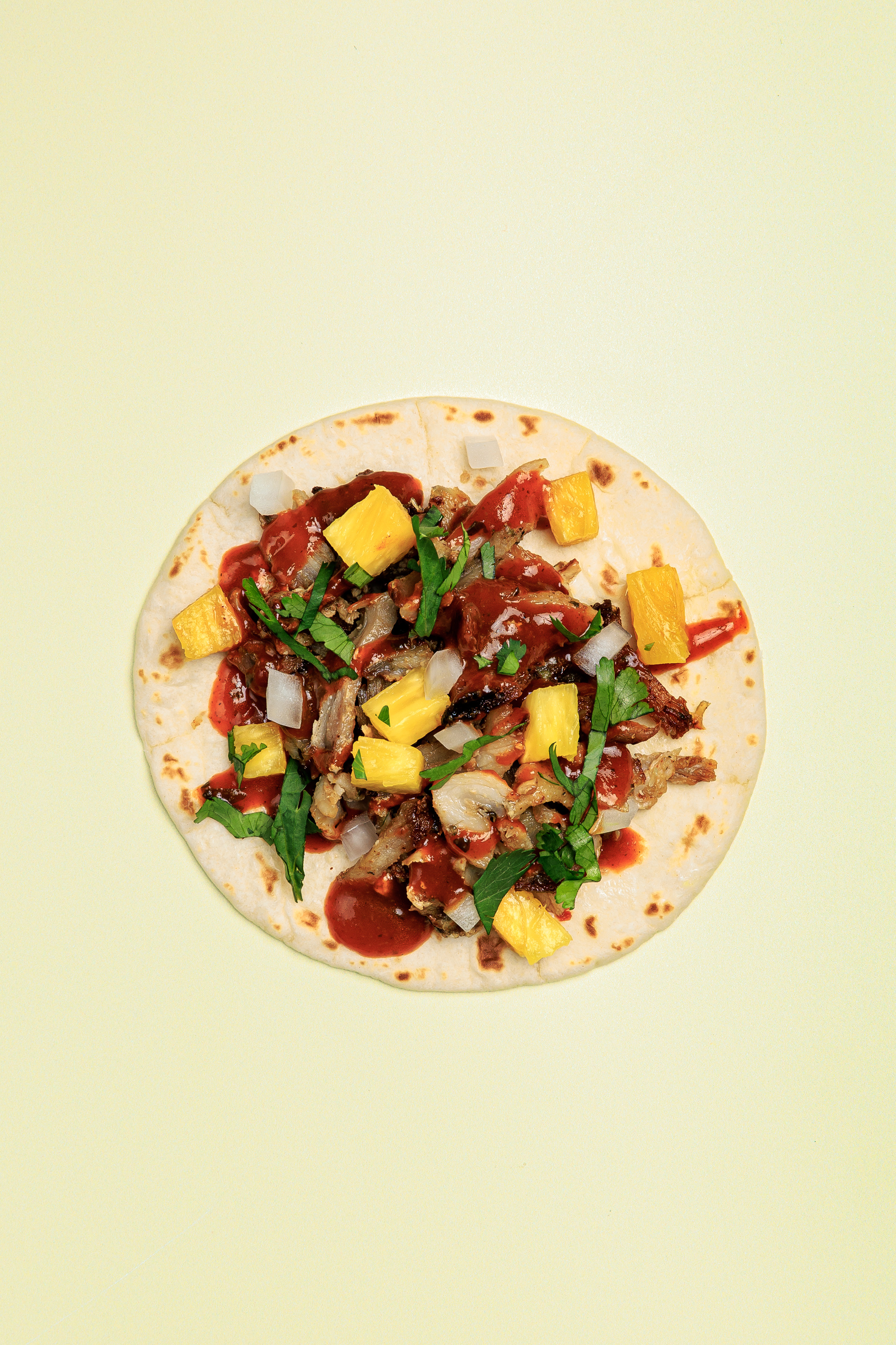 Pork trompo, smoky adobo sauce, pineapple, white onion, cilantro