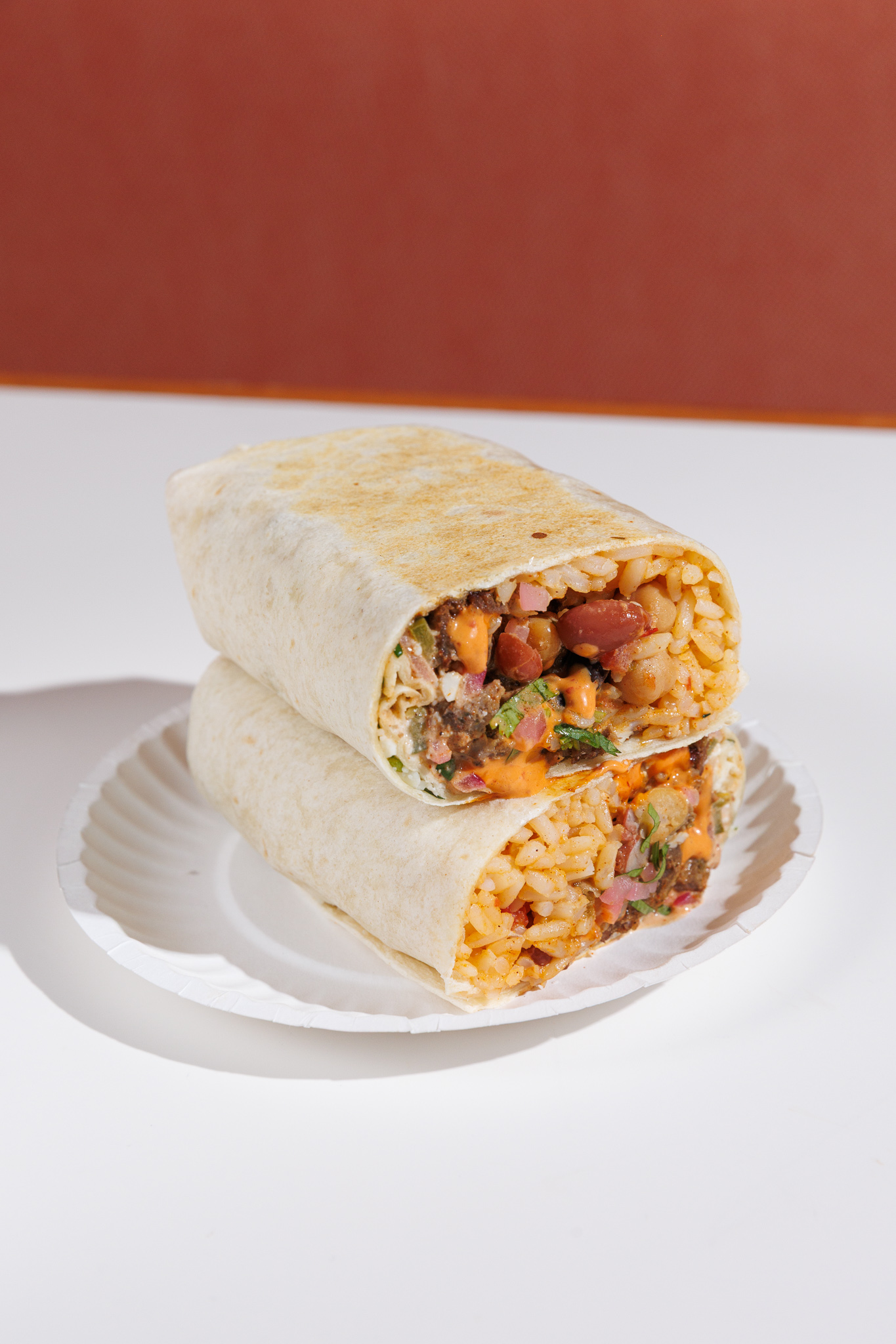A hearty burrito wrap built just right with orange mojo rice, your choice of protein and salsa, three beans, lime crema, jalapeño onion relish, queso fresco, and fresh cilantro. Big flavor, classic comfort.