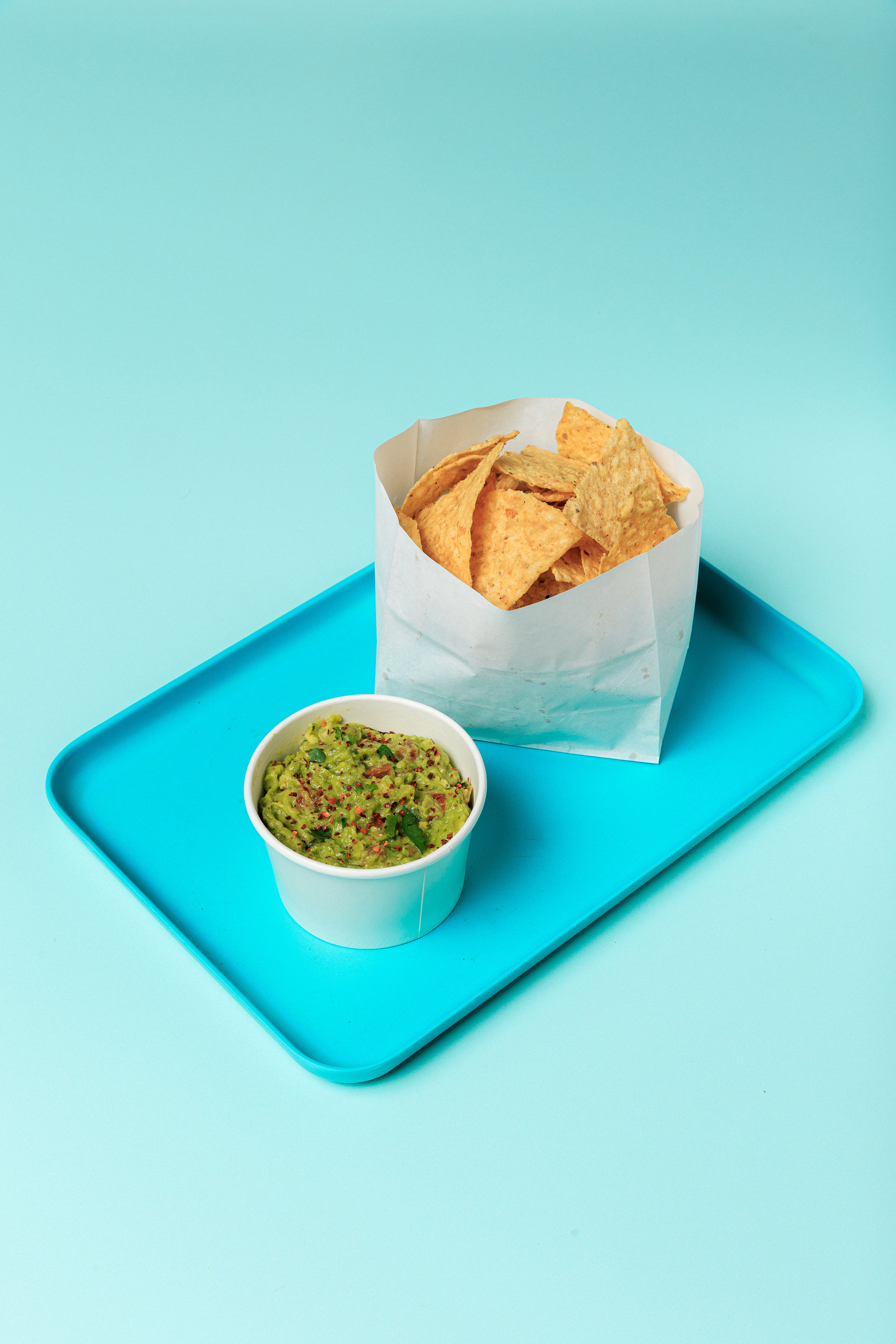avocado, cilantro, lime, onion and aleppo. served with chips